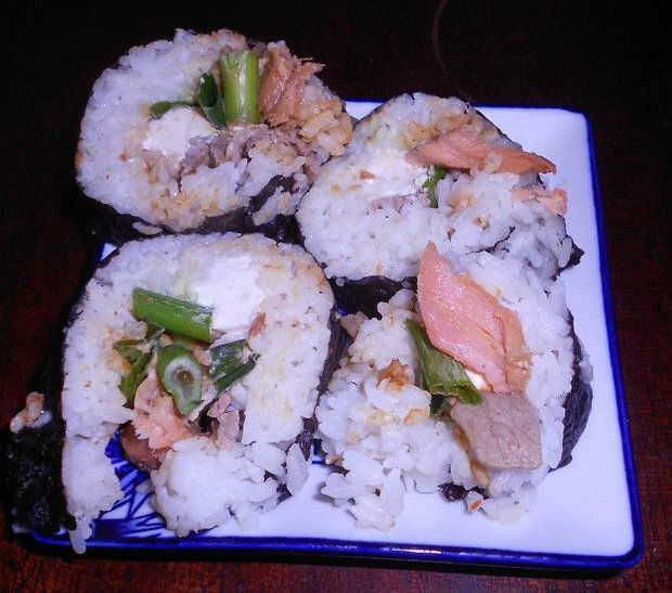 Dara (la esposa y la otra mitad de nuestra página impresionante) ha pensado en publicar cosas de comida y aquí por un tiempo, y recientemente hemos encontrado también de estos pequeños bichos. Sushi con BACON... y algunas otras cosas mezclan. Posiblemente es un nuevo ingrediente de sushi favorito y en algún momento voy a hacer que les fría, pero por ahora, esta es una de las recetas que está utilizando. Generalmente le gusta cocinar sushi roll muchos lotes para grandes grupos de personas más.