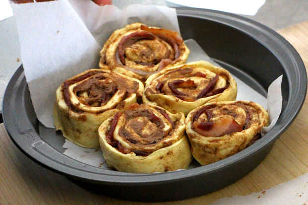 quiero tocino, pero nunca pensó que algo que es bueno de una manera dulce!   Así que cuando me topé con esta receta: http://quick-dish.tablespoon.com/2012/07/10/bacon-cinnamon-rolls/, no estaba demasiado seguro.  La receta es bastante fácil, y me met