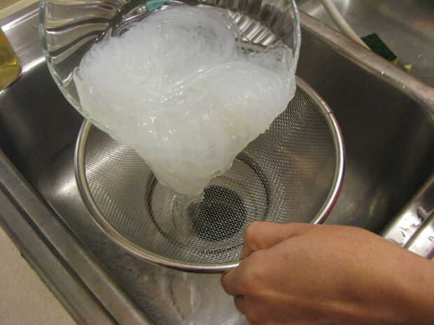 Añadiendo estos tallarines a la taza de repollo rallado en el paso siguiente.