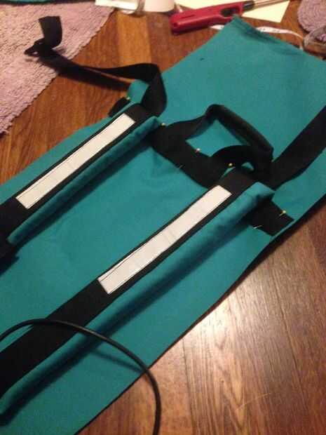 ¡ Mira tu pieza trasera acabada en orgullo! Ahora usted tiene un acolchado con tirantes y puedes llevar todo por un mango fresco! Rad. Que buen trabajo de reportes, usted.