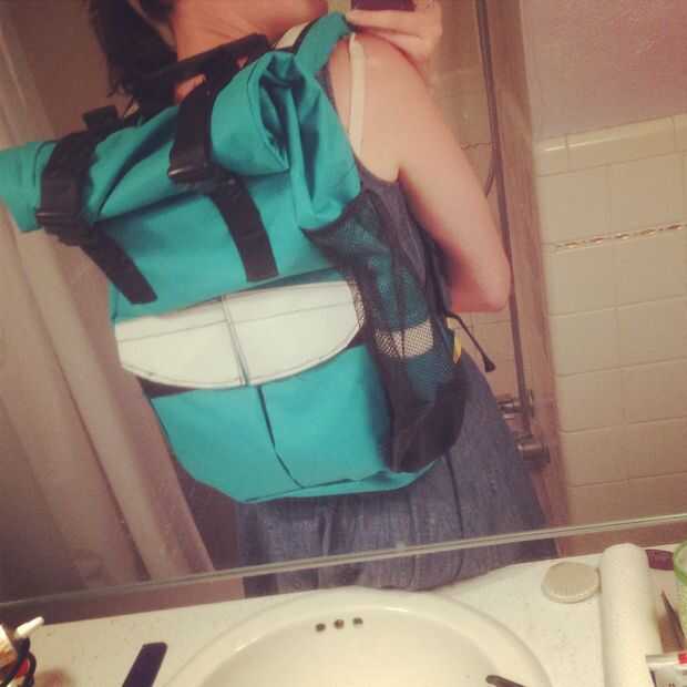 Aquí están mis mochilas de bebé! El turquesa es mi primera nunca, con cordura, que encontré a la venta. Aquí estoy con ella a Portland, OR, el más lluvioso, ciudad de bikingist. Para la comparación ponga para arriba al lado de mi novio North Street bolsa (hacen bolsas de rad, también--es una mochila convertible para maletas, que no me sentía lo suficientemente valiente para afrontar esta vez alrededor). Se puede ver son aproximadamente del mismo tamaño, pero me gusta el doble las correas a través de la mejor tapa. También puse Acentos mucho más reflectantes para mayor seguridad.