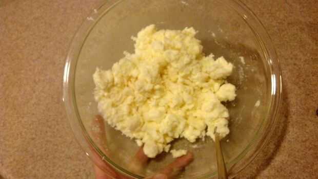 a continuación, tienes que batir la mezcla de mantequilla y azúcar con un tenedor o batidor hasta en aparece bien mezclado y esponjoso.