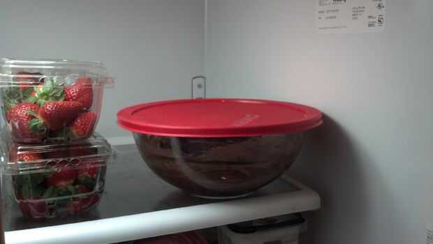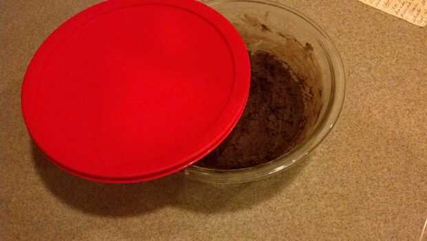 El siguiente paso es cubrir la masa de galletas y coloque en el refrigerador para enfriar. Suelo hacer esta noche, pero un par de horas debería ser suficiente. Enfriar la masa lo hace más fácil de manejar. Si continúas sin enfriar la masa, se pegue en tus manos y hacer rodar la masa en bolas extremadamente duro.