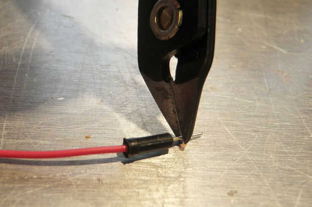 Una vez que el cable de extensión de entrada fue soldado en su lugar, entonces era sólo una cuestión de epoxying abajo en unos pocos puntos para mantener la tensión de la articulación y evitar de cortar al hilo flojo. No cubro la soldadura conexión propia con epoxi en el caso de que tenía que llegar ahí por alguna razón y fijar la conexión.