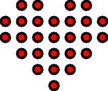 Ahora, el corazón. Utilizando un software de gráficos de vector 2D (recomiendo Inkscape), dibuje un corazón, formado por 27 círculos, diámetro ~0.6 cm. Proporcionó un hecho, pero no dude en modificar como quieras.