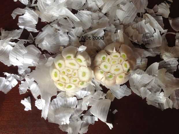 Primero lo primero: tomar ajo fresco duro en su tienda. Suave, brotes de ajo no es bueno (ver última foto).