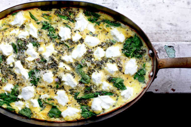 Mientras que es lento para cocinar, la espera merece la pena. Romero, queso de cabra y espinacas se combinan en un sabroso bocado. Parte de Quiché, parte de tortilla, esta frittata es rico, cremoso y consolidados por la combinación del clásico flan de crema y huevos. Cantidades generosas de espinacas equilibran el plato y romero fresco desde el jardín da el plato un pop.