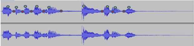 Un intento de usar sílabas para distinguir cuando la boca se abre y se cierra fue utilizado en vano. Se decidió usar máximo (punto amarillo) y mínimo (punto rojo) visto en el cuadro a continuación para simplificar los movimientos (mi mente tiende a hacer cosas más complejas que tienen que ser). Cuando hay un punto alto la boca debe estar abierta, y cuando está más cerca de la mínima del centro debe estar cerrado. Esto llevó a algunos ensayos y errores, pero consiguió cerrar. La próxima vez miraré en lo automático con sensor para distinguir alta y baja, abierto y cerrado. Esto permitiría que el robot a decir nada y él se movería en consecuencia sin tener que traducir el discurso en abrir la boca y la boca cerrada. .