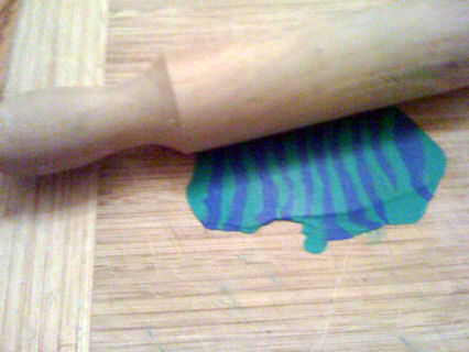 Rodillo hacia fuera el Sugru los colores se mezclan y una cebra que patrón. Luego retirar de la superficie con un cuchillo o espátula.