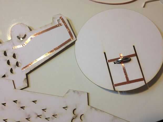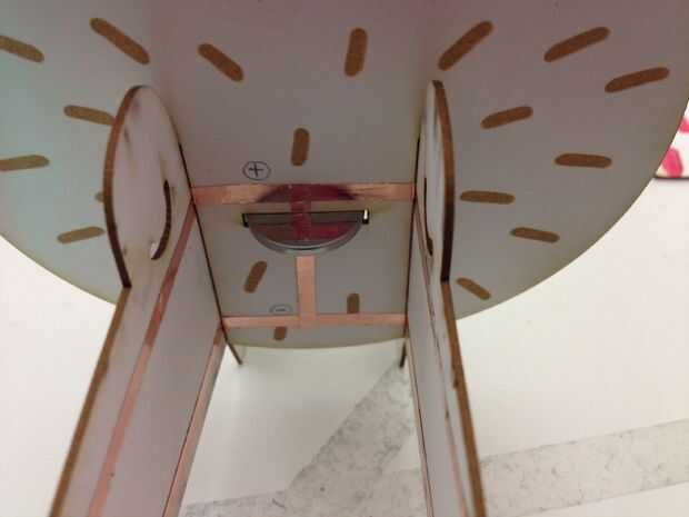 Por último, coloque la cinta de cobre como se muestra en la foto de la cabeza de León. Ir todo el camino interior con la cinta de cobre a través del espacio para la batería. Esto asegurará el contacto y por lo tanto, una buena conexión a través de la presión entre la batería y el agujero con cinta de cobre.