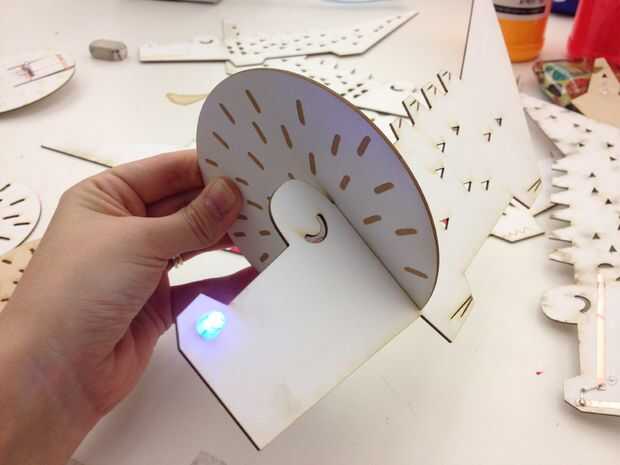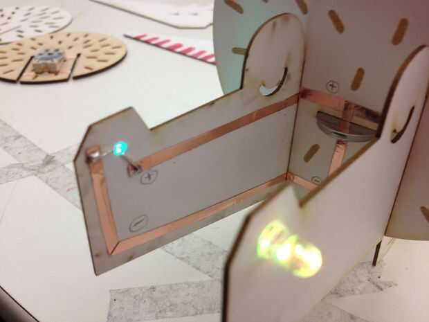 LEDs de lugar en formas de cartón del cocodrilo. A través del orificio de la nariz y se empujan en la cinta de cobre por el otro lado. Prueba fijándolos con cinta de enmascarar primero y asegúrese de estar probando las conexiones con las piezas de cartón montado. Si algo no coinciden, sólo tome la cinta y re la cinta de cobre en una posición tal que todo se alinea perfectamente. Una vez que todo coincida puede empezar a soldar.