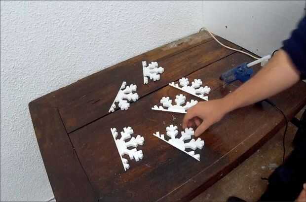 Cortar el copo de nieve. Asegúrese de que la espuma de poliestireno es enaugh grande para caber los vectores. Las 6 piezas son muy frágiles en este punto, así que mucho cuidado al tomarlos hacia fuera.