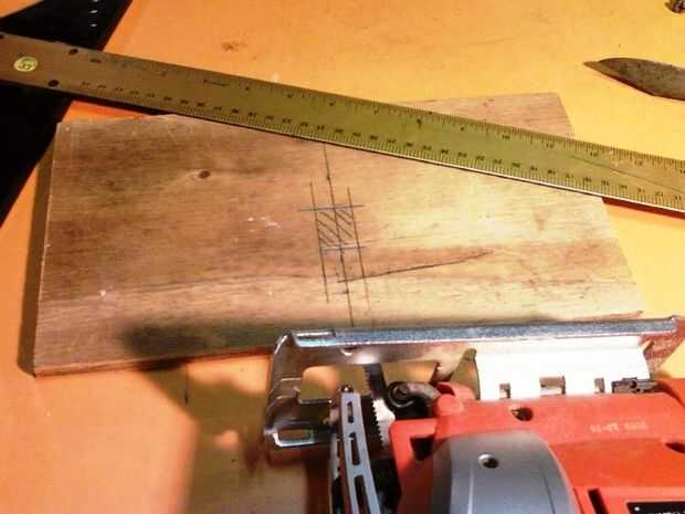 Luego usé mi Dremel Trio para crear un agujero rectangular que encajan en mis marcas. Alternativamente, esta función podría realizarse por taladrar un agujero de 5/16" en cada esquina del rectángulo, y luego usar mi jig Sierra para cortar entre los cuatro orificios.