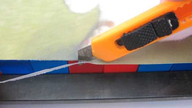 Si la imagen va sobre el borde de los bloques, utilice su cuchillo para recortar el exceso.