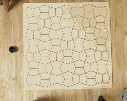 Elegí la teselación de el Cairo como es único, pero no solamente, en las se desarrolla una forma - hexágono - de una colección de figuras más pequeñas - el Pentágono. Por otra parte, la proporción de estos módulos trabajado bastante bien como una habitación y sobre todo, sugiere un arreglo de racimo fuerte como se indica anteriormente. Sin embargo, mi principal preocupación era si podría desarrollarse suficiente variación de la misma forma pentagonal. Para probar esto, he creado un juego de mesa: los comunes de el Cairo. De hecho, en la investigación de teselación de el Cairo, me encontré con un juego de tablero basado en la teselación de el Cairo llamado Corredor de el Cairo. Mientras tanto inspirado por corredor el Cairo, el Cairo comunes pretende organizar grupos de espacios cerrados como aulas (en negro) vinculados con los espacios abiertos de colaboración flexibles (en blanco). Agregar una regla que cada azulejo negro debe compartir un borde un espacio en el tablero, para una pared expuesta permitir la luz natural en el espacio (si se tratara de una escuela). Mediante la creación de un juego, era capaz de desarrollar rápidamente una variedad de formas de desencadenar nuevas posibilidades no había considerado, y aún más, poniendo el juego hacia fuera para que otros puedan jugar más posibilidades fueron desarrolladas (véase el lapso de tiempo). En Resumen, esto me convenció de que incluso con una ficha estándar (módulo), había hecho un montón de sitio para la variación.