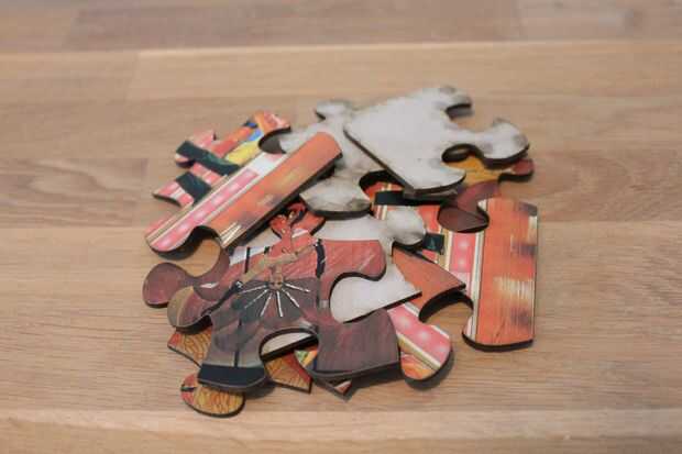 Después de cortan todas las piezas, limpiar todos los humos de corte de las piezas del puzzle con un paño.