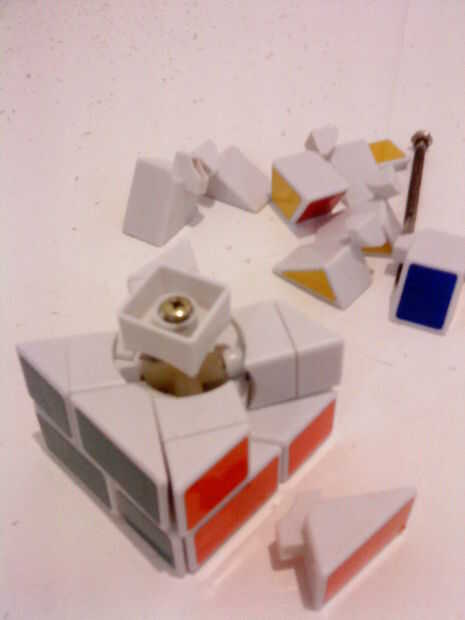 Después de tomar los cuatro tapones, tienes que poner otra vez en su lugar, pero en posición hacia atrás (foto1 - la tapa azul (la Feria de la tapa naranja una posición antes de la vuelta). Y entonces, se necesitará reorganizar todas las cuatro otras partes, según su color-(imagen 2 si se hace correctamente, debe buscar como. la parte naranja muestra la azada debe colocar otras partes). Porque la situación es al revés, hará que el patrón de "Ladrillo". (si usted confundido, basta con mirar las imágenes terceros y cuarta. Vas a entender)