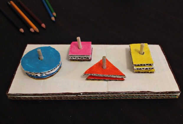 Puzzle de cartón de forma geométrica es tres manera aprendizaje juguete. Es muy divertido y brillante actividad.