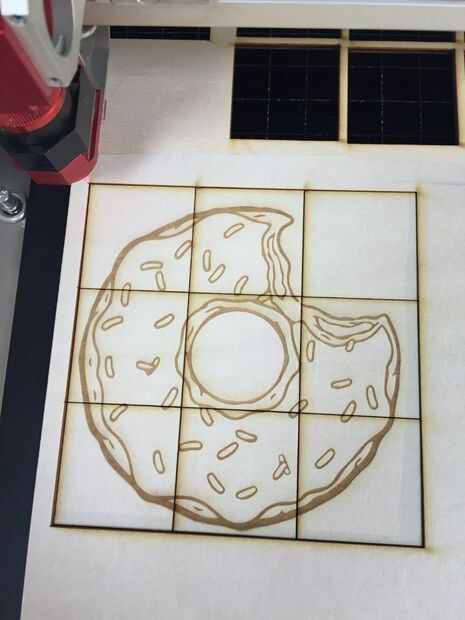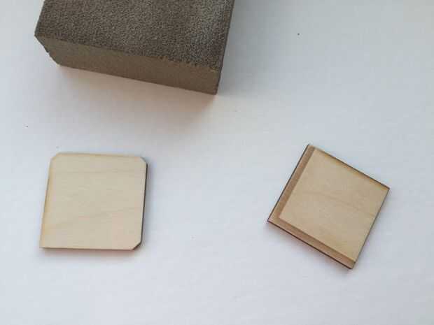 Cortar las piezas. En nuestra versión, he añadido una imagen grabada a los azulejos arriba. Puede utilizar una imagen, un texto o incluso sólo números en cada azulejo.