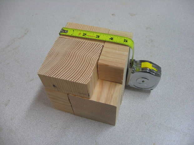La caja debe proporcionar suficiente sala meneo que los bloques se pueden retirar fácilmente. Yo sugeriría hacer una caja con una abertura de 1/8" a 1/4" sobre el tamaño de los bloques cuando se apilan en la configuración del rompecabezas terminado, como en esta foto.