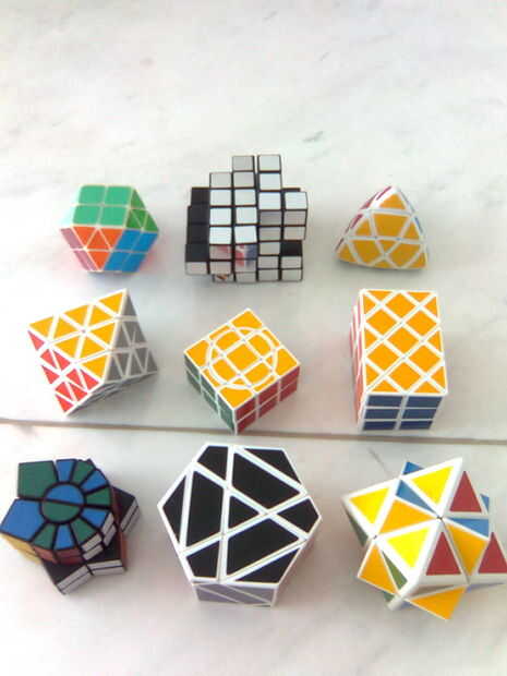 3ª fila; el skewb Super Plaza 1, prisma Hexagonal y estrella