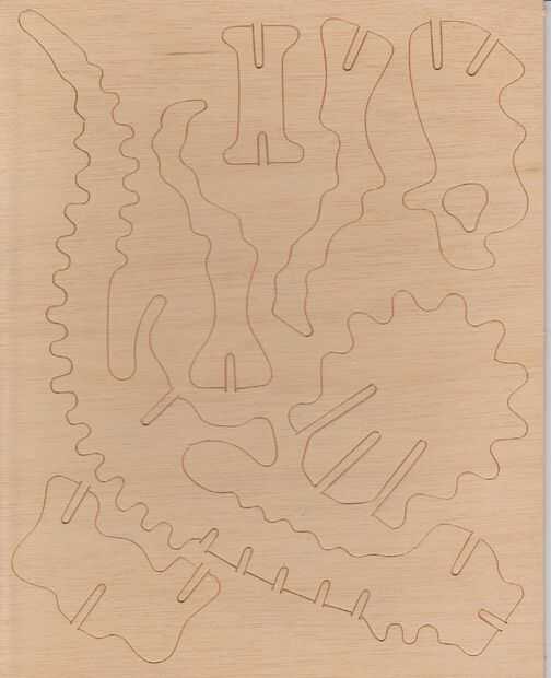 Esta montaña rusa surgió como un feliz accidente. En mi montaña de dinosaurio original, había grabado el dinosaurio. Recientemente había cambiada la bombilla en el cortador del laser y accidentalmente corte profundo que tenía la intención. Por lo tan