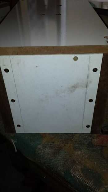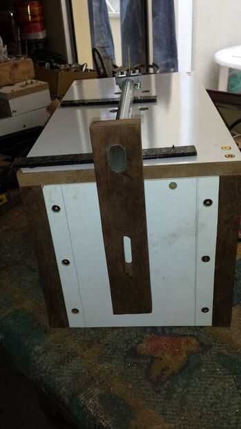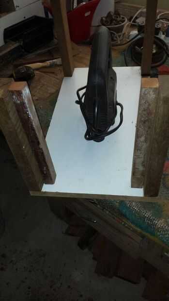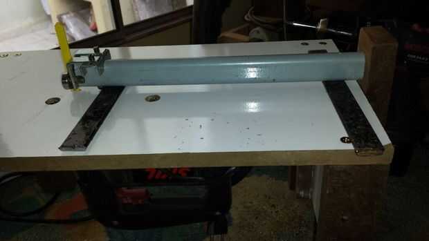 También foram parafusados dois filetes de madeira para servirem com guia suporte braço (sexta e sétima foto).