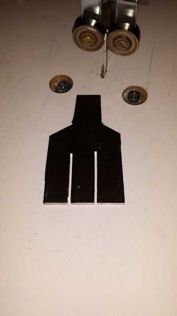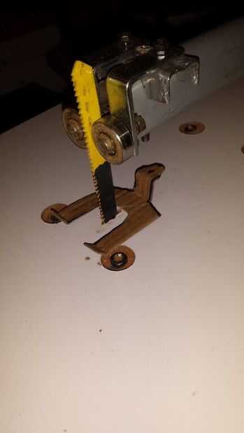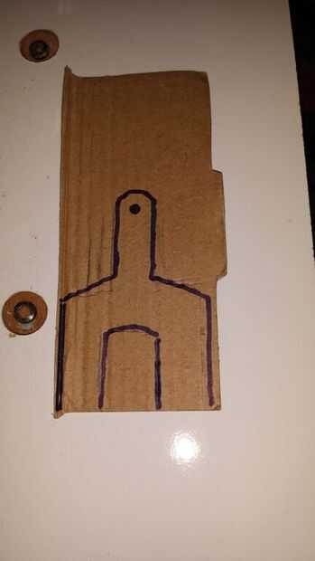 Em um pedaço de papelão foi feito um esboço da peça 系統 de "pulsado", cuja finalidade é evitar o material que está sendo cortado pule. O "pulsado" pressiona o material a ser cortado contra o tampo da mesa.