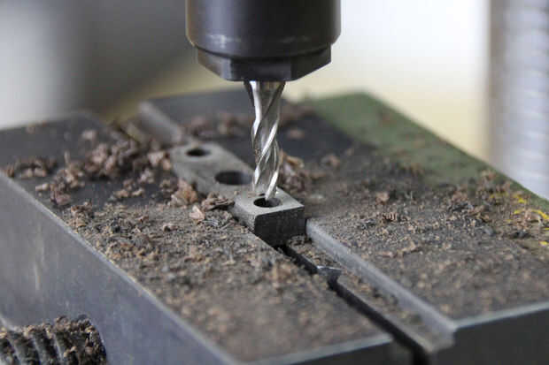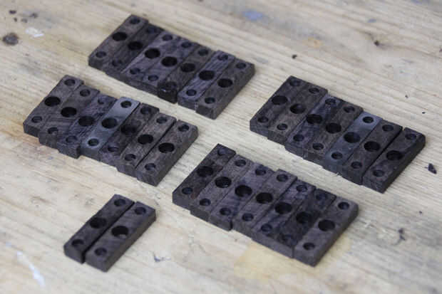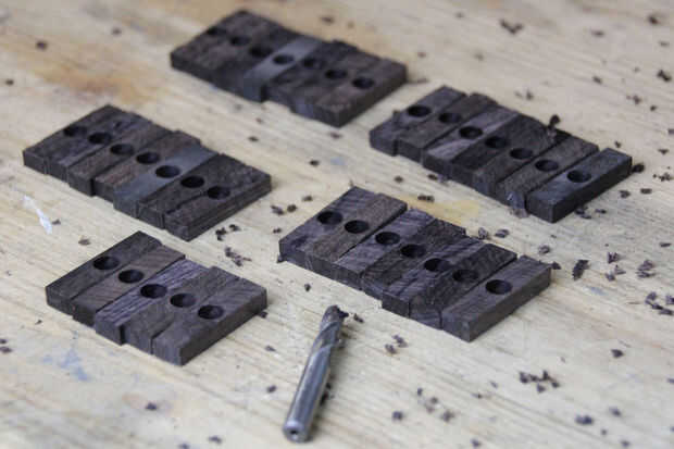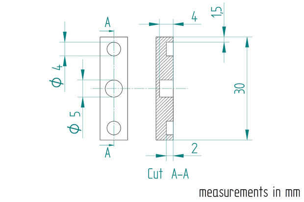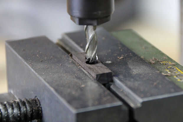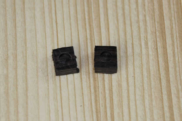 Usted también necesitará dos piezas de 8 x 8 mm, que posteriormente se utilizará para cubrir los botones. Taladre un orificio de 4 mm en el centro de ellos.