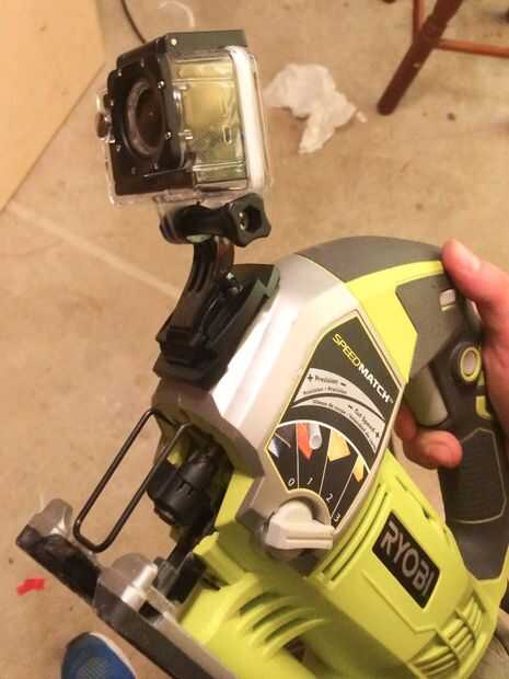Tuve que hackear aparte uno de los soportes de clip para que no presentaría en los tornillos de máquina. Utilicé mi buen viejo pegamento caliente de pal para mantenerlo todo en su lugar. Creo que ayudó un poco con la vibración también. Yo montado en mi cámara en un ángulo que tenía la hoja de sierra y eso fue todo!! El material salió grande y estoy muy contento con los resultados. Tengo un clip corto de la prueba.