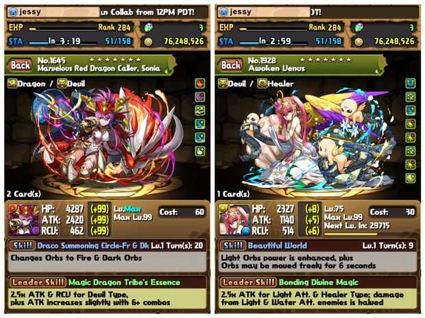 Monstruos pueden ser de dos tipos. Ambos tipos cuentan para cualquier bono de la habilidad de líder que se apliquen. Por ejemplo, Ronia es un tipo de demonio/Dragon y I & I es un tipo de Dios/sanador.