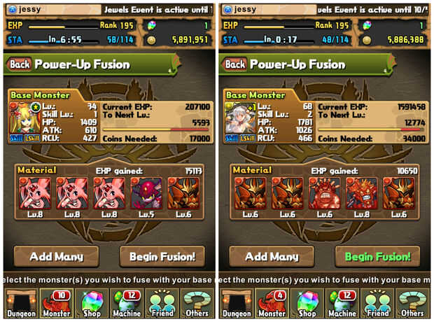 - alimentación en bonos de Power-Up fusión - usted puede ganar x 1,5 ó x 2 EXP