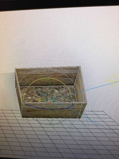 9. por último seleccionamos el área que queremos implementar esta imagen y arrastrar y soltar la textura del activo con el botón izquierdo del ratón. He elegido un look de plataforma de madera y una imagen de paja para el fondo de la caja para mostrar cómo se ha hecho. (imagen 24, 25 y 26).