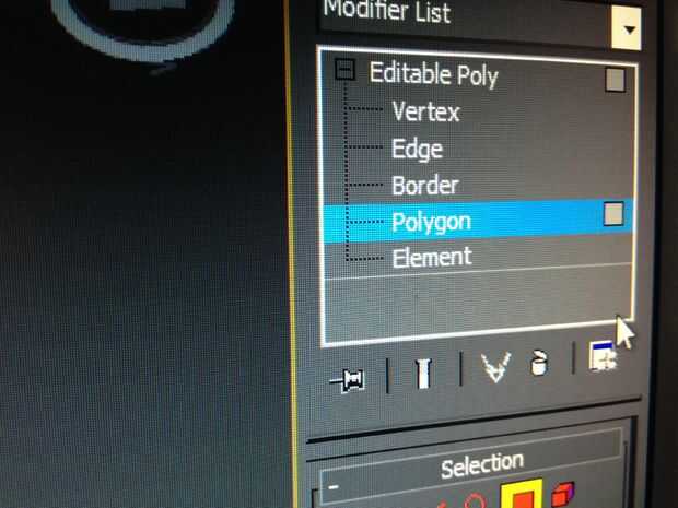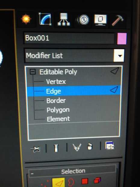 3. ahora nos hemos convertido a un editable poly que vamos a seleccionar el polígono en el menú del lado derecho (imagen 7) luego debemos seleccionar la parte superior de la caja que se convertirá en un color rojo más oscuro. Después de la parte superior de la caja se ha seleccionado a continuación volver a nuestro menú a la derecha y busque la opción de sacar (imagen 8).