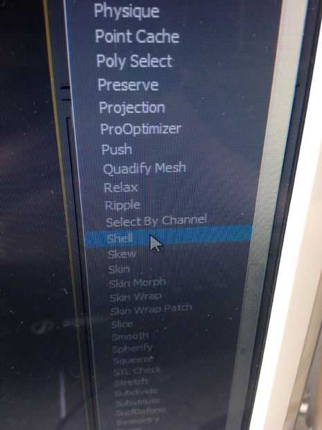 6. una vez que se han seleccionado todos los bordes mediados nosotros simplemente eliminarlos dejando una abertura a lo que será nuestra caja. (imagen 13). A dar a nuestra caja de más de una mirada realista se destacan el cuadro entero, volver a nuestro menú de la derecha y haga clic en la lista de modificadores (imagen 14) entonces debemos buscar para shell (imagen 15) una vez que la cáscara se ha colocado la caja tendrá algunos grueso a él (imagen 16).
