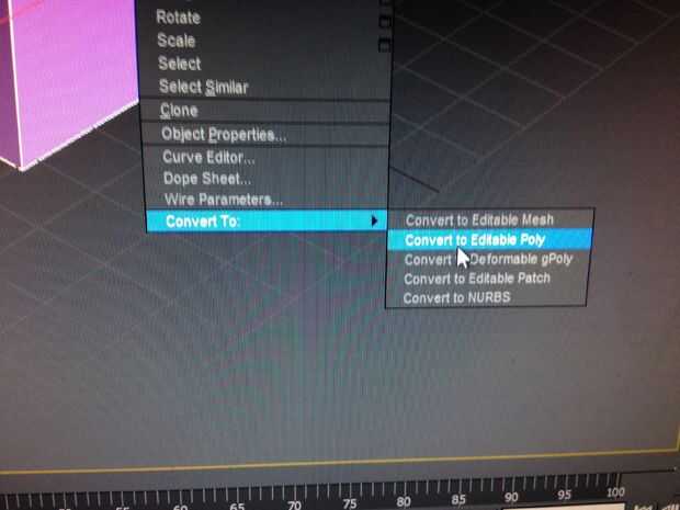 2. ahora nos vamos a la derecha clic el cuadro que hemos creado y bajar convertir se abrirá otro cuadro para mostrar una opción para convertir a editable poly (imagen 6). Esto significa que ahora podemos cambiar diferentes aspectos de nuestra caja y no sólo la altura o la posición.