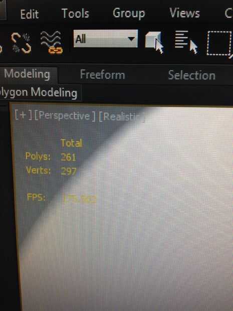 hay una opción con en 3ds max que le informará sobre cuántos polígonos ha llevado a crear el activo puede hacerlo pulsando (7) en el teclado y aparecerá en la esquina superior izquierda. (imagen 1)