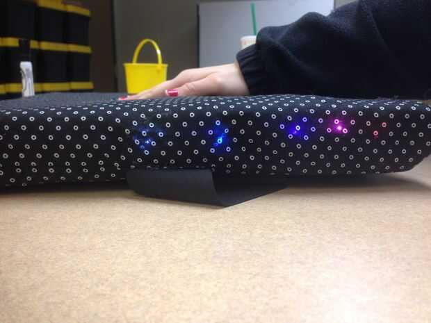 La almohadilla tiene 6 luces de LED que se encenderán después de un intervalo de tiempo, alertando al usuario de las próximas vacaciones. Una vez que todos los LED se encienden para arriba, sonará una señal acústica. El zumbador continuará a apagarse hasta que el usuario está parado para arriba. El usuario tendrá que levantarse para una cantidad de tiempo antes de sentarse nuevamente. Si el usuario intenta sentarse antes de que la cantidad de tiempo, el zumbador sonará otra vez. El objetivo principal de la almohadilla de obligando a romper es servir como un recordatorio para un trabajo individual en un escritorio.