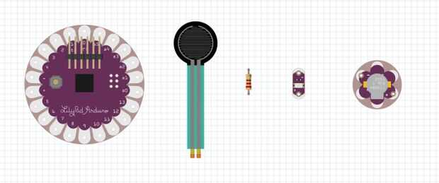 Todos los materiales de tecnología fueron ordenados de Sparkfun y los otros materiales eran de Telas de Joann.