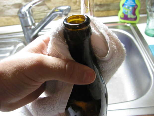 Romper la parte inferior de la botella de cerveza (2 / 4 paso)
