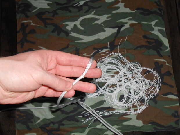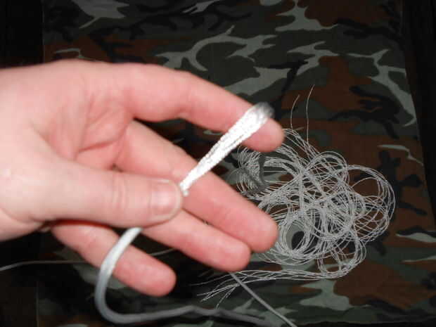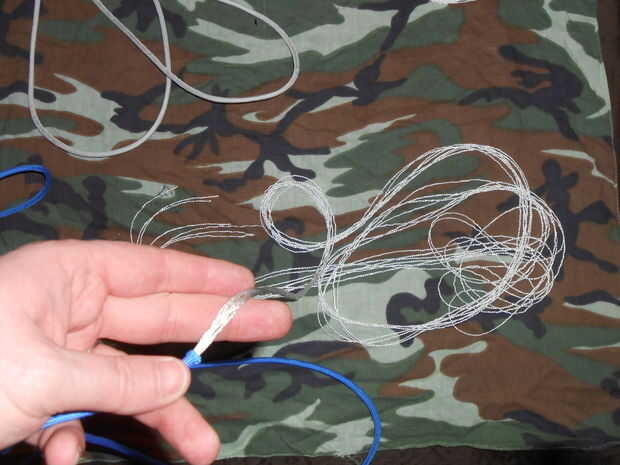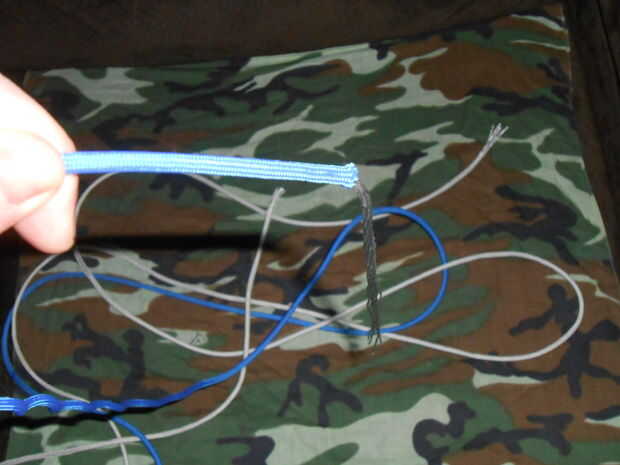Entonces destruyó el paracord para hacerla plana. Para el cable de la tripa y hacer planos, necesita sacar los filamentos internos, más el paracord más trabajo es sacar.