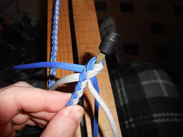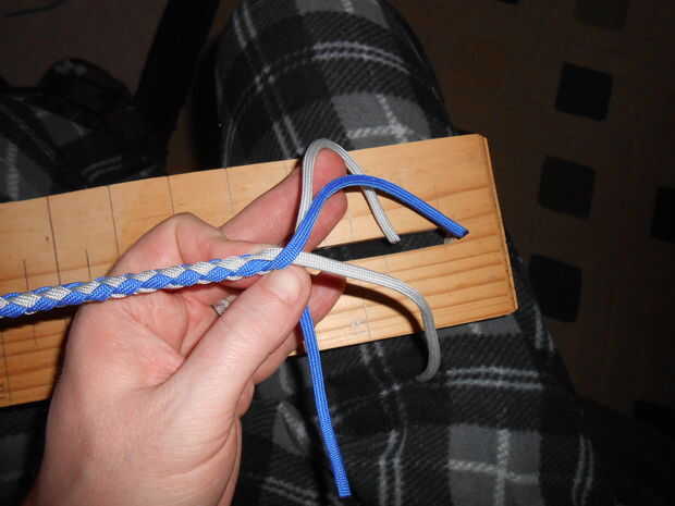 Pasar los extremos restantes de trabajo 2 por el otro lado del bucle y comenzar a trabajar el patrón a lo largo.