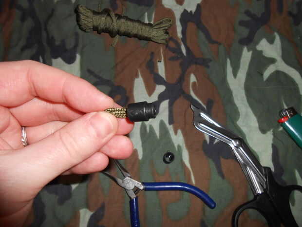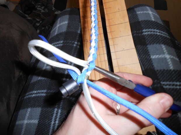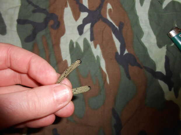 Recorte los extremos hacia atrás casi al ras, pero deje suficiente para que con cuidado puede fundir los extremos. Cuando fuseing no intentar calentarlos hasta mucho, no quiere empezar la trenza de fusión.