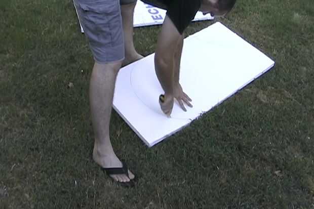 Agarrar marcador y sostener en una mano, con un extremo de la cuerda y estirar la cuerda a la curva, en el centro de la espuma. Mantener la mano allí y con la mano del fabricante dibujar un semicírculo en la parte superior de la lápida. Luego corte a lo largo de la línea para hacer la forma de su piedra sepulcral.