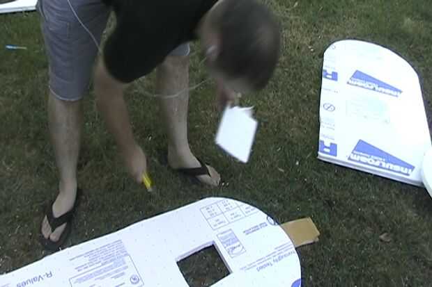 Decidir qué capa será el centro de la lápida y corte un orificio de tamaño medio en él. Este agujero va a llenar de harina, para que cuando la tumba rompe parece polvo de concreto volando.