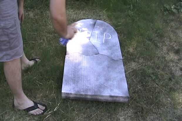 Cómo montar una decoración de césped de espuma de poliestireno, piedra sepulcral de halloween
