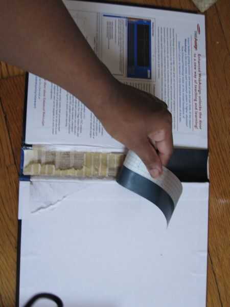 Rompiendo los pesados libros de texto a los libros más pequeños para facilitar su transporte. (3 / 4 paso)