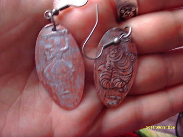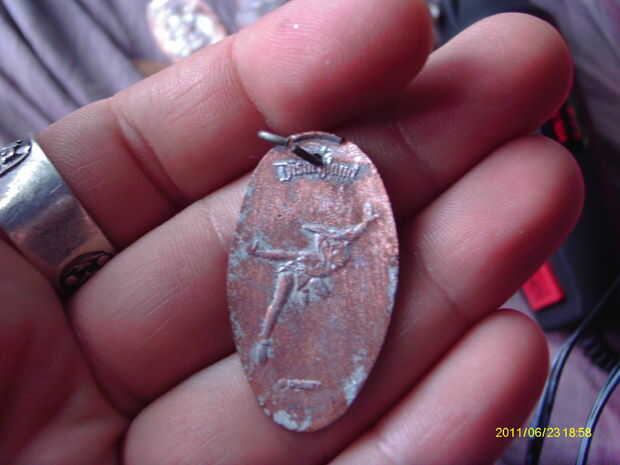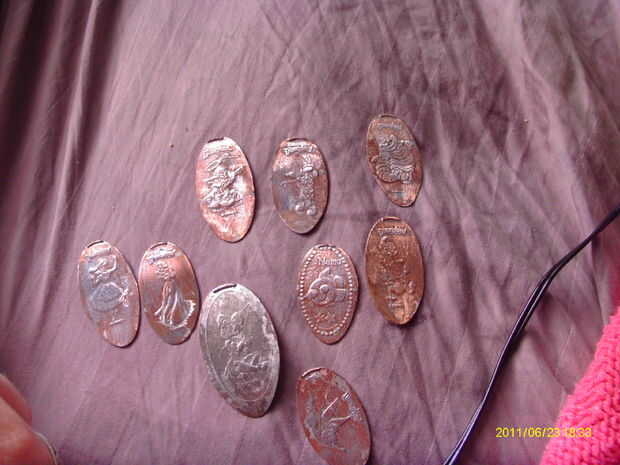 La última vez que estuve en Disneyland he comprado muchos rompieron centavos (y un cuarto) como baratijas para llevar a casa conmigo. Una vez que llegué a mi casa decidí convertirlos en joyas. Pintado con pantalón de plata, entonces puse en una lata y se olvidaron de ellos. Ayer por la noche encontró y decidió hacer cosas creativas con ellas con mi nueva herramienta rotatoria.