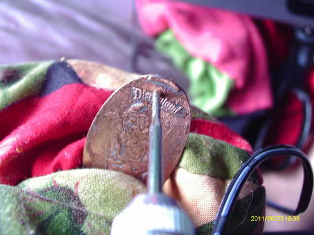 ' 3. principio perforar la moneda. Este proceso lleva un tiempo asi que tengan paciencia.