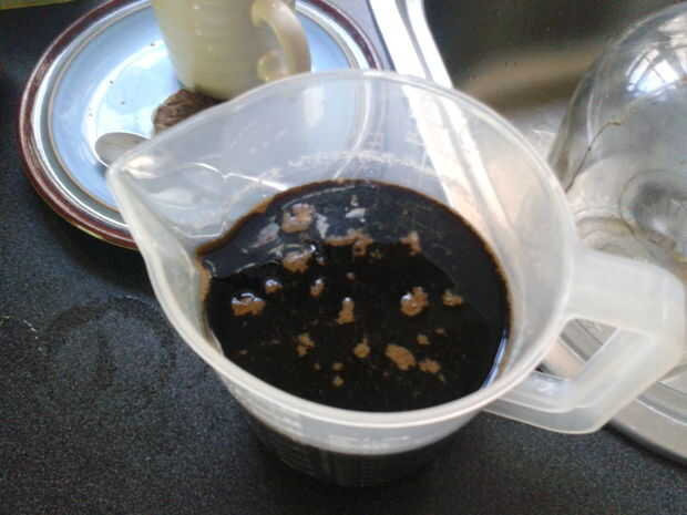 Ahora, en la parte pertinente. Usted puede haber notado al verter el agua con azúcar sobre el lugar que es bastante grueso. Más grueso que, dicen, Ron. Para remediar esto, hervir algo de agua y recarga de su garrafa hasta que la consistencia se ve sobre derecho. Científica, lo sé.